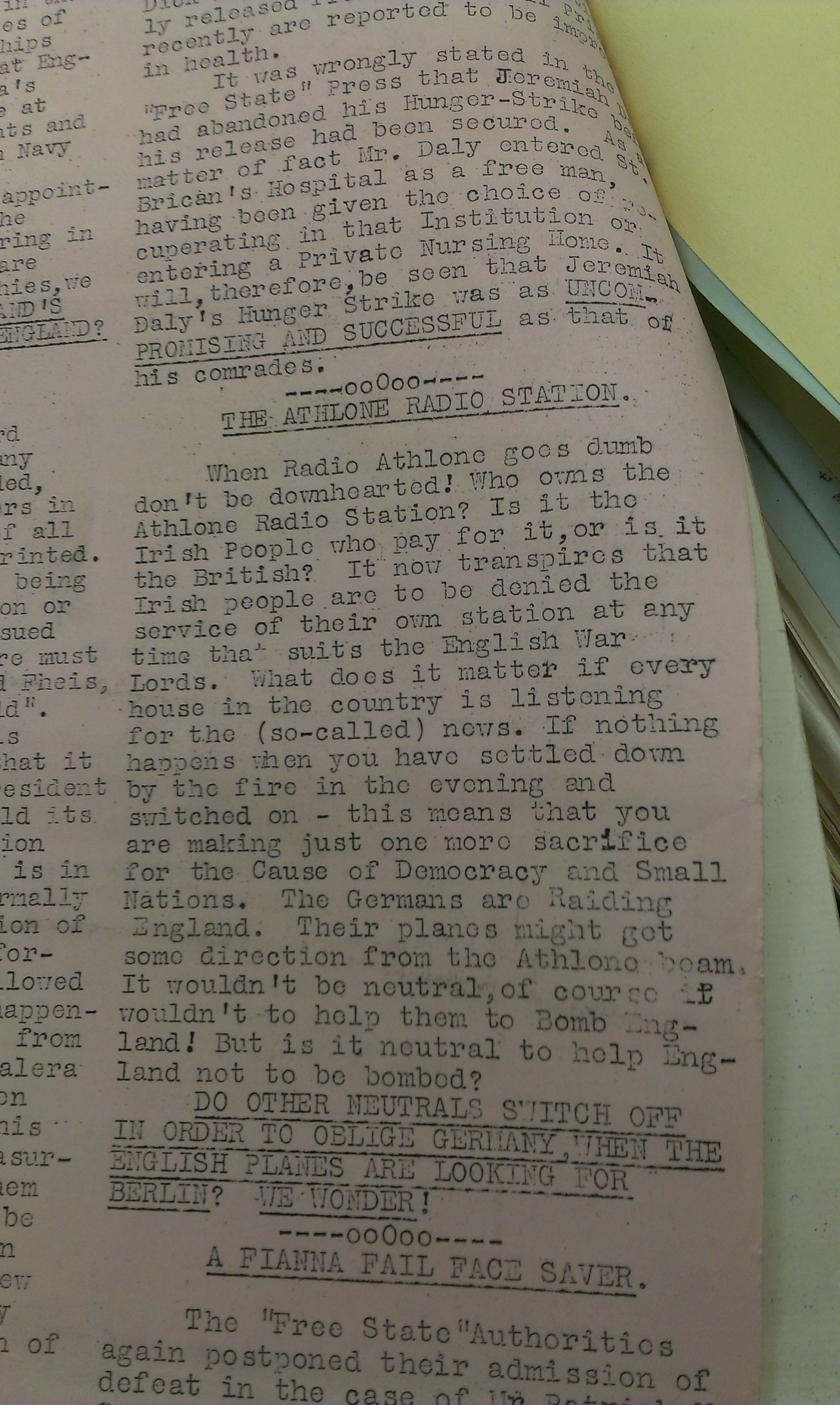 Cumann na mBan head office to the IRA, 21 June 1940.