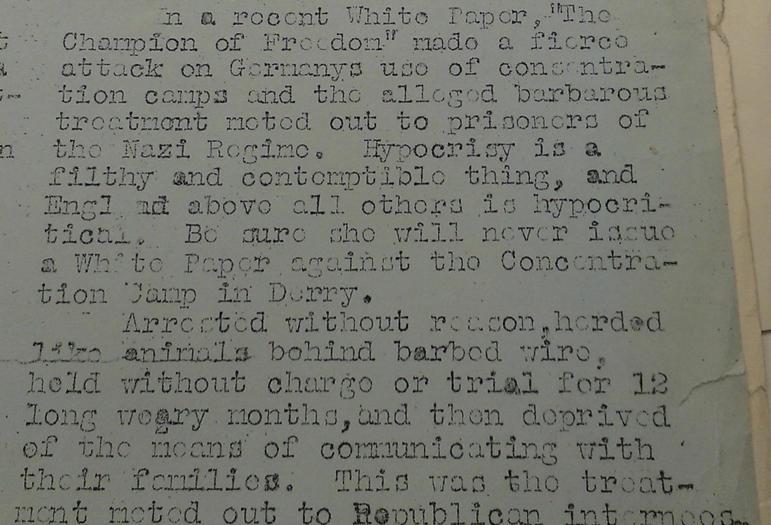 The IRA attacks Britain's criticism of Nazi concentration camps and their "alleged"