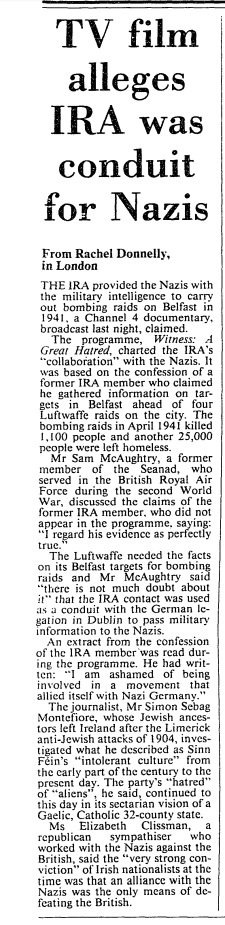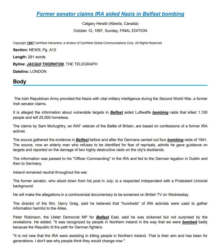 The IRA helped the Luftwaffe bomb Belfast and Derry.