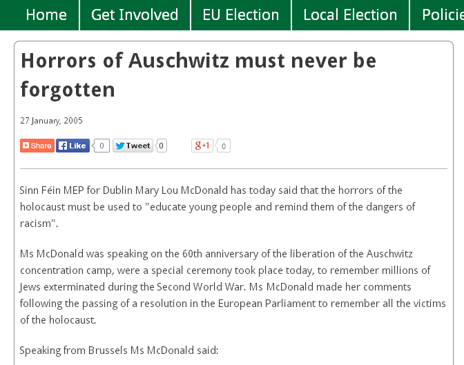of Sinn Fein, the person lecturing us about the Holocaust above,