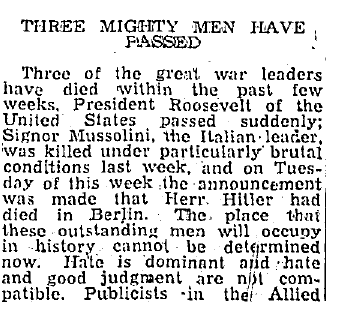on the deaths of Roosevelt, Mussolini and Hitler,