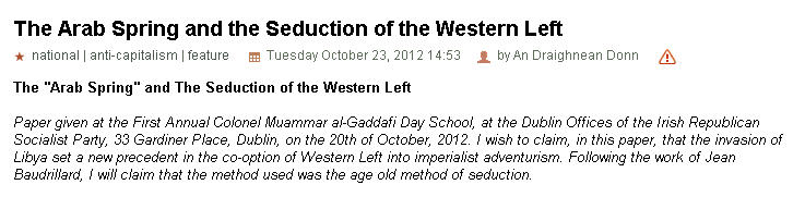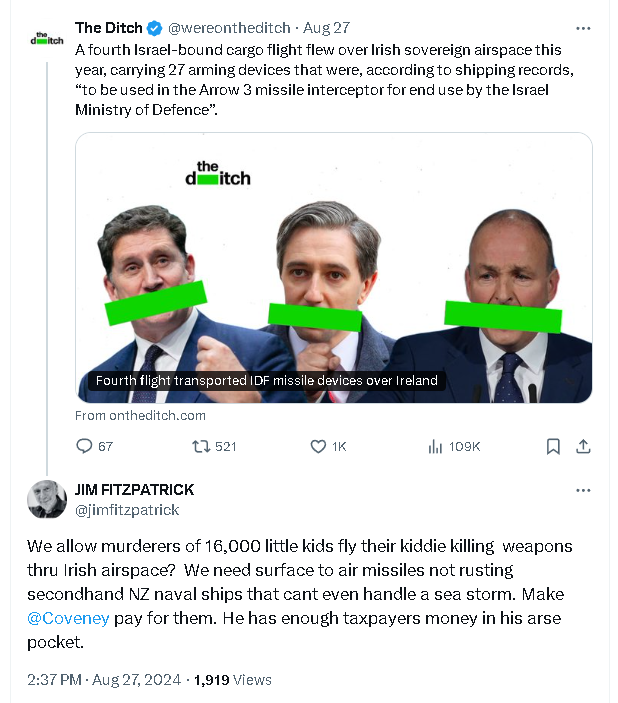 Fintan Lane of Anti-War Ireland is quoted as saying: