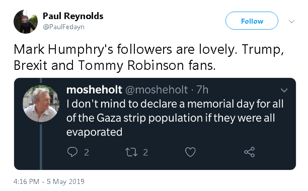 "He's a fervent supporter of Israeli policy and he's an alt-right neo-Nazi."