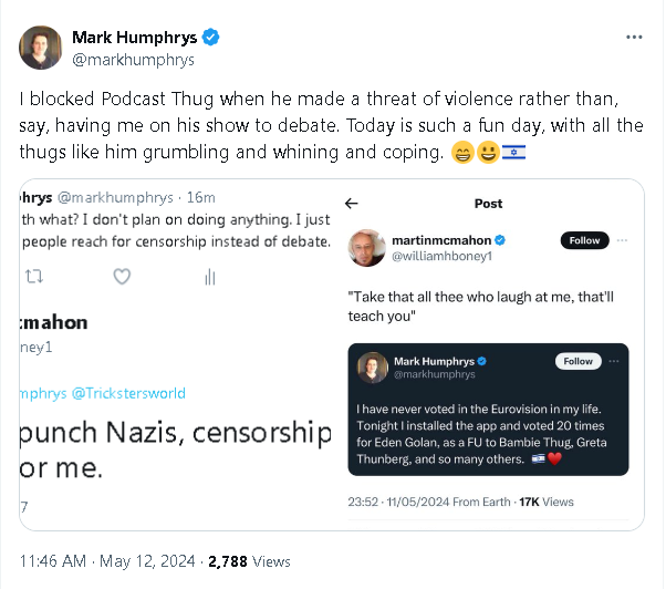 So pathetic. Provos and Nazis and Islamists and Communists cannot compete on the field of arguments, so this is what they are reduced to.