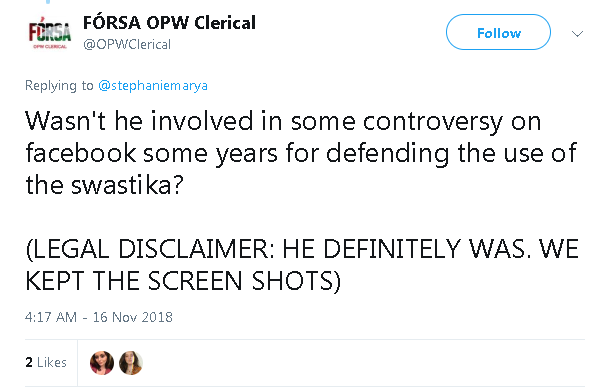 OPW branch of FÓRSA Trade Union lies about me in Nov 2018.