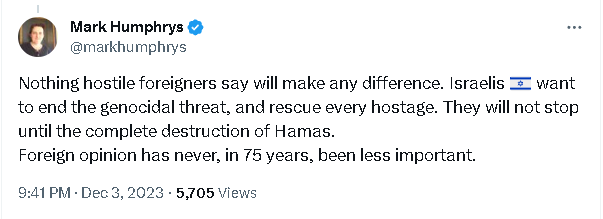 He is angry with Israel for responding to years of Hamas rocket fire.