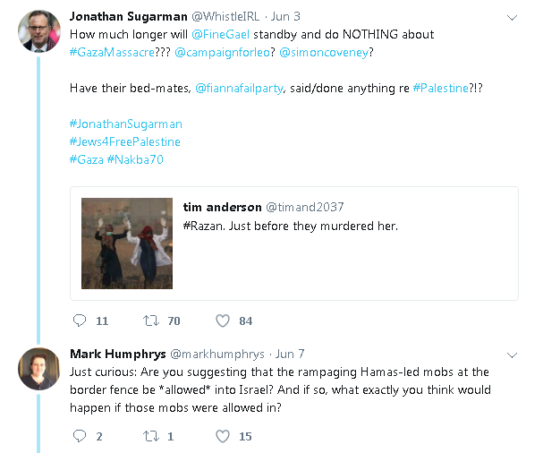 - on endless Irish criticism of and demos against Israel,