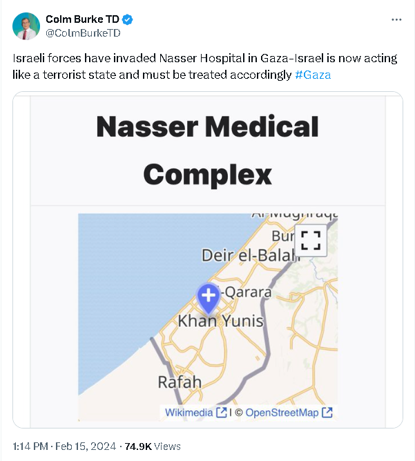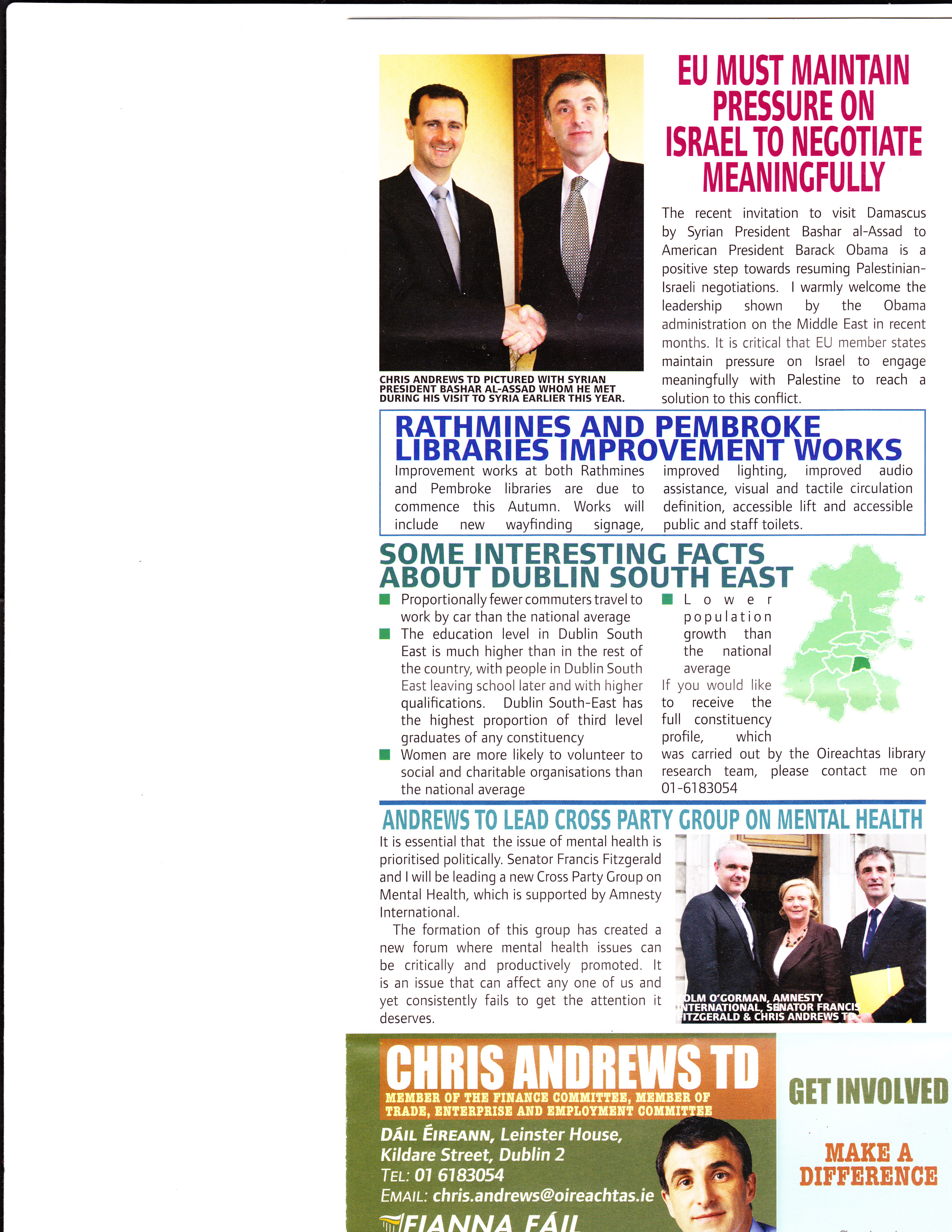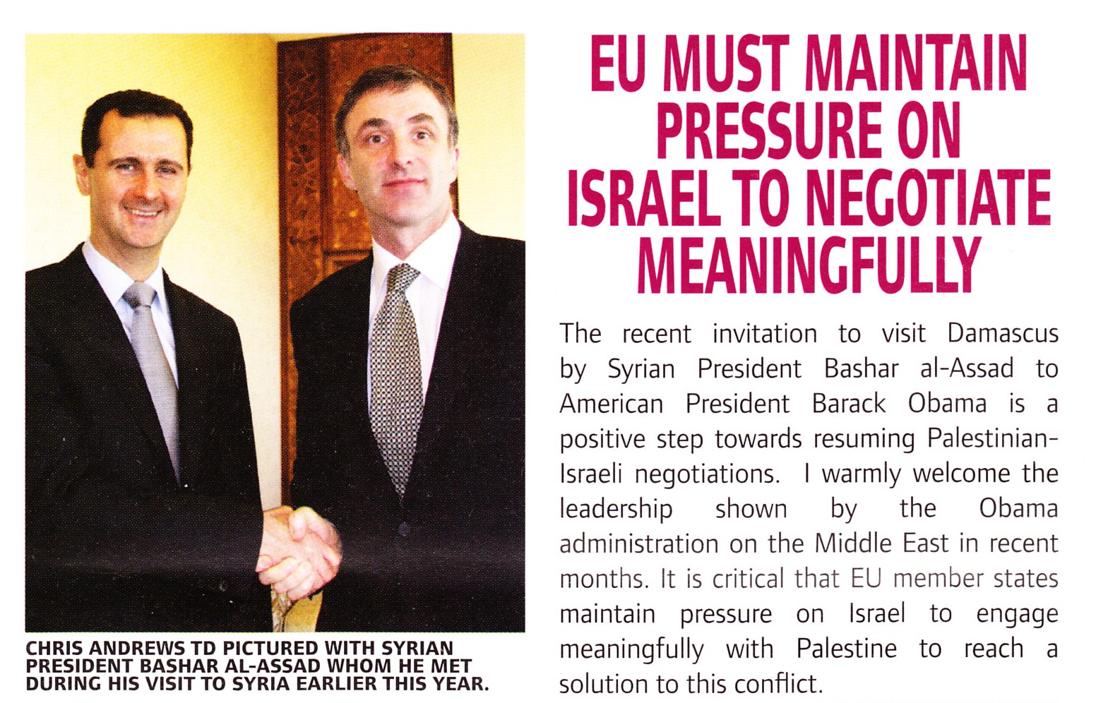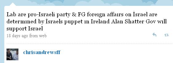 In Sept 2013, Chris Andrews left FF and joined Sinn Féin, which shares his appalling views on Israel.