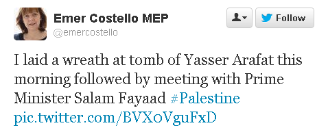28 Apr 2013 that she laid a wreath at the tomb of mass murderer Yasser Arafat.