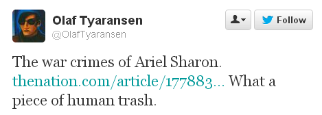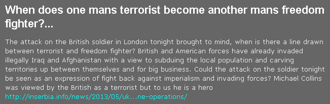 - Harry Browne, Village, Feb-Mar 2013, on the fanatically violent Palestinians,