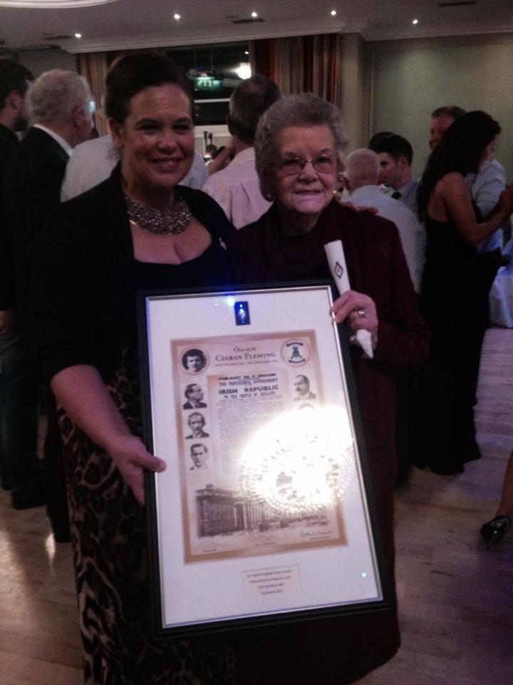 "Delighted to speak at Derry Volunteers Dance. Very moving occasion for all the families. Honoured to be honoured."