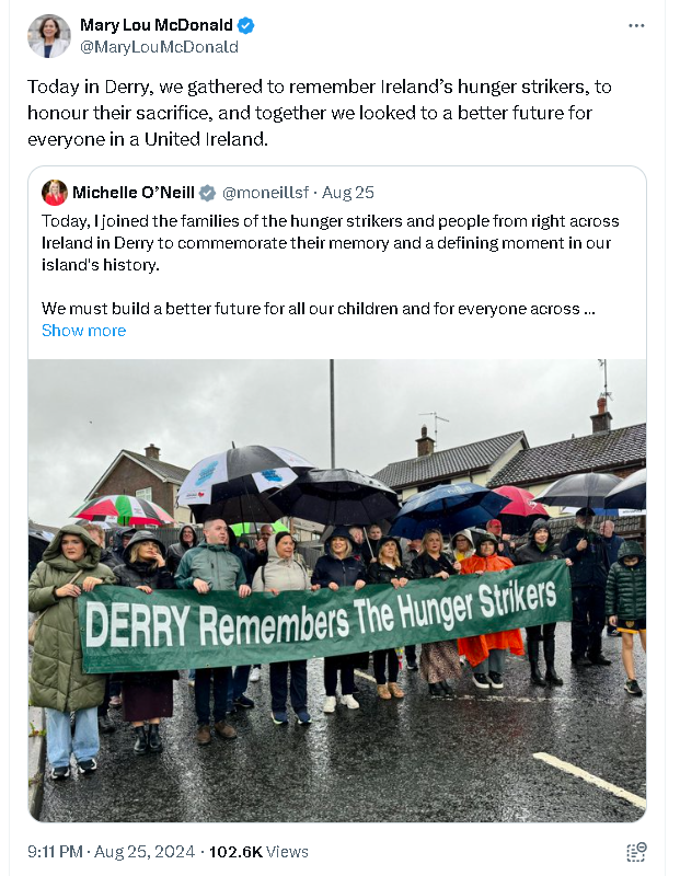 Mary Lou McDonald remembers dead IRA terrorists in Aug 2024.