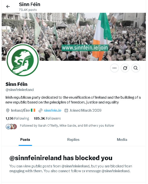 Also Sinn Fein: We do not even tolerate British-friendly Southerners, let alone Northern Unionists.