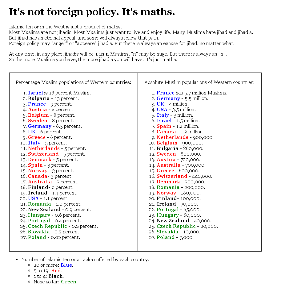 Islamic terror in the West is just a product of maths.