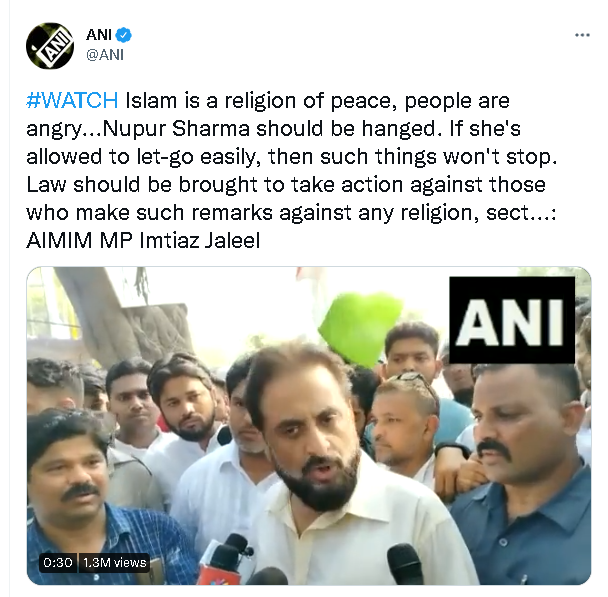 "Islam is a religion of peace. ... Nupur Sharma should be hanged."