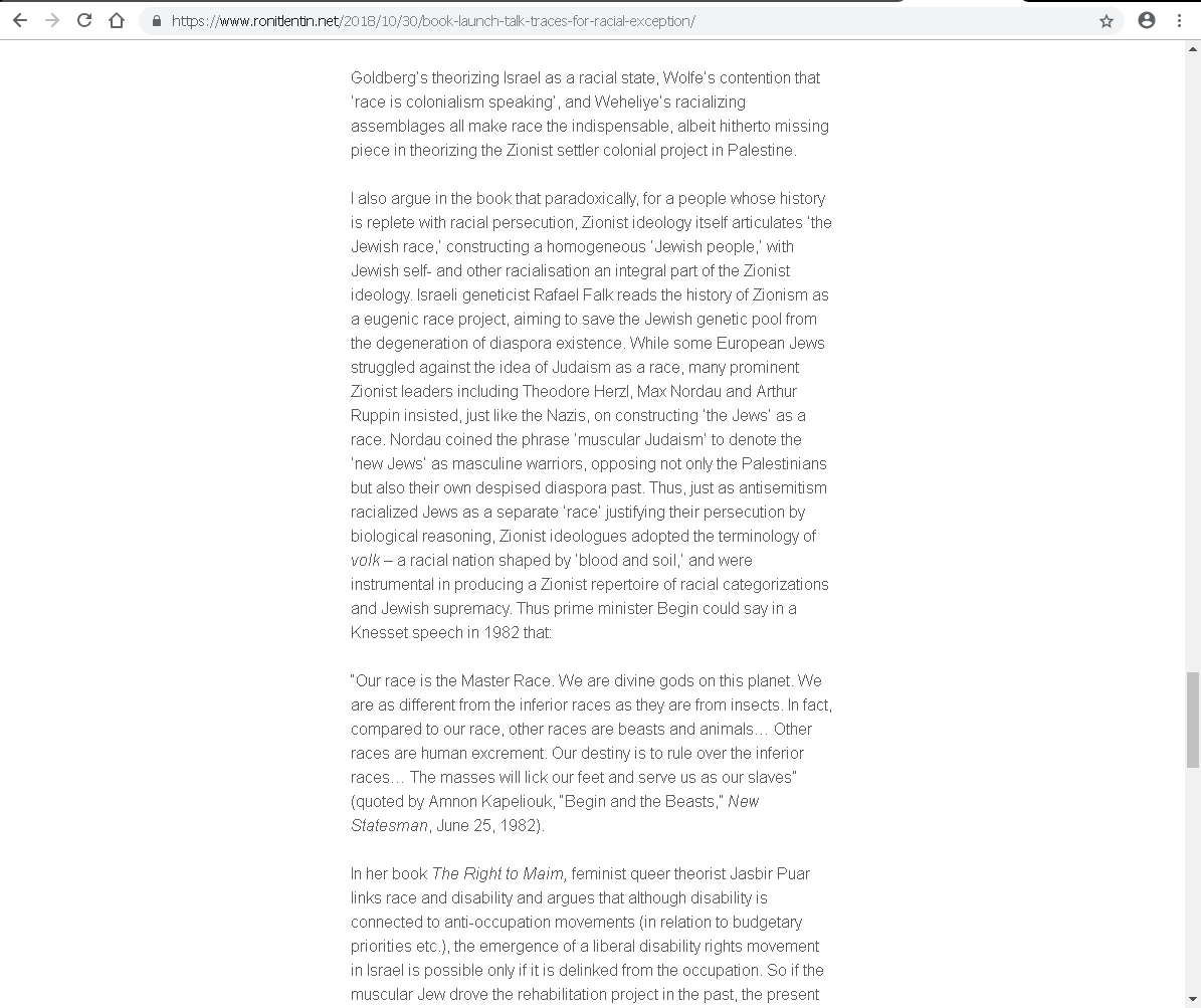 Ronit Lentin (Bloomsbury Academic, 2018).