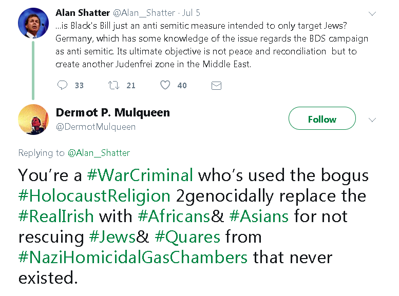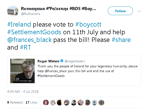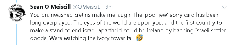 deranged hatred of Israel, and finally Fine Gael decided to approve a Jew-boycott,
