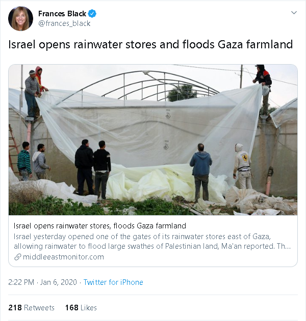 "I saw the impact of settlement expansion when I visited the West Bank ... I witnessed ... the crushing indignity of a Palestinian community having been cut off from its water supply which had been diverted to support an Israeli chicken farm.