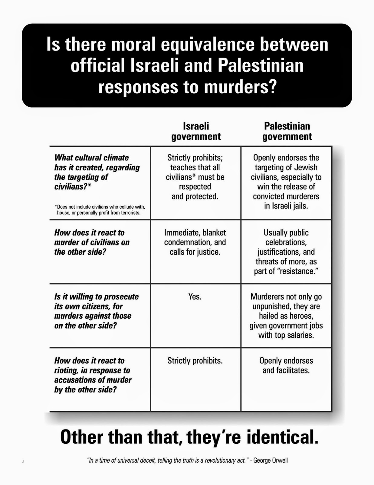 And .. the difference between the morality [of Israelis and Palestinians] becomes crystal clear.