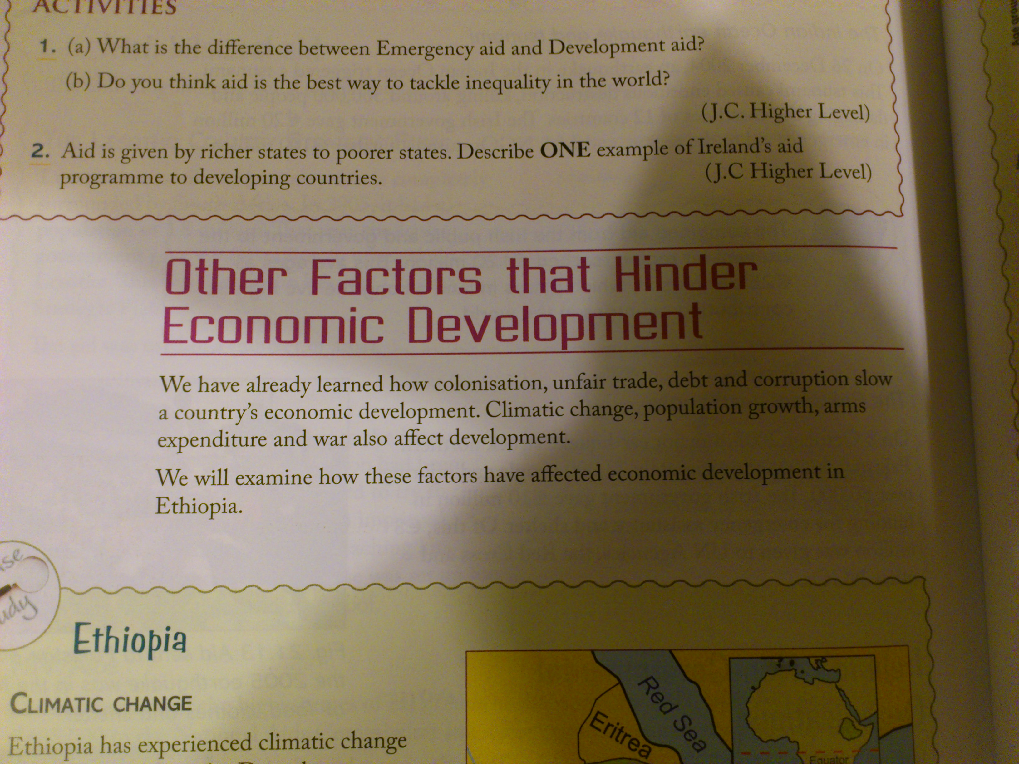 colonisation, unfair trade, debt, corruption, climate change, population growth, arms expenditure and war.