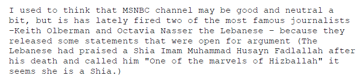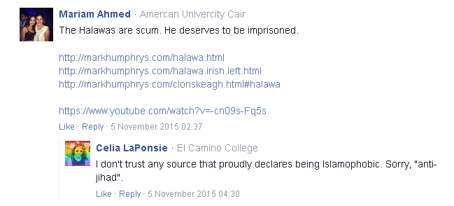 confident western leftist, who dismisses her, and says I am not to be trusted because I am "anti-jihad".