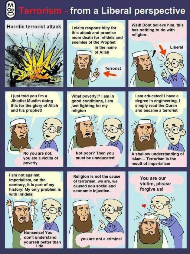 Pure ignorance. Most leftists know nothing about jihadist slaughters that do not involve the West - Nigeria, Thailand, Philippines, Egypt, Algeria, Sudan, India, Pakistan, Russia, Somalia - and get angry if you bring them up. They think jihad only happens with westerners.