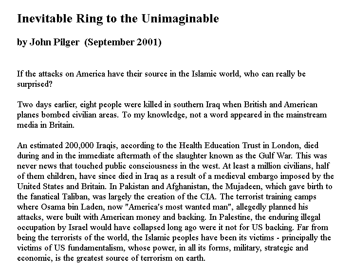 have been its victims - principally the victims of US fundamentalism, whose power, in all its forms, military, strategic and economic, is the greatest source of terrorism on earth."