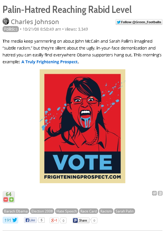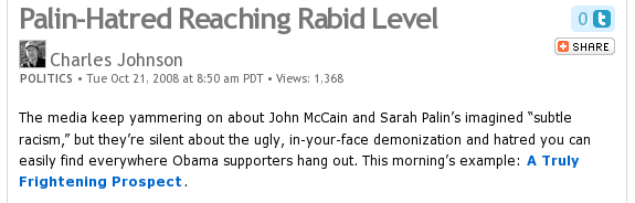 Charles Johnson is the one spreading Palin-hatred: