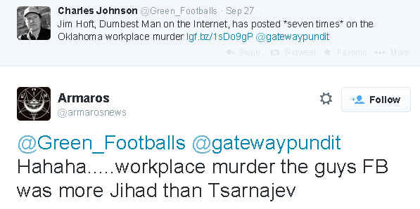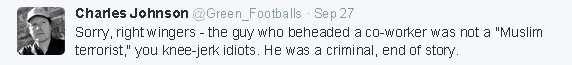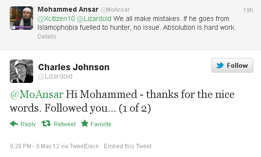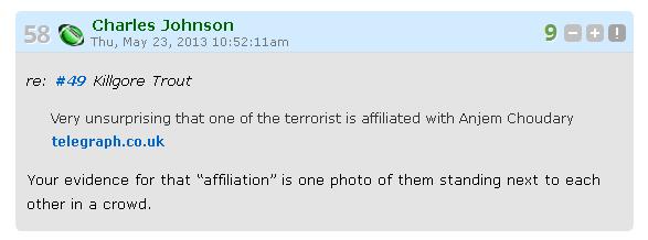 Charles Johnson, 23 May 2013, reacts by attempting to defend Anjem Choudary.