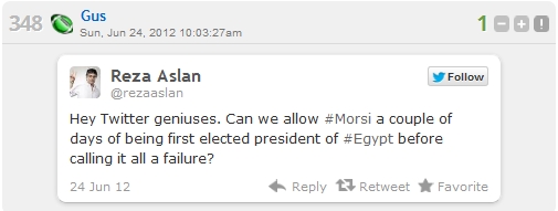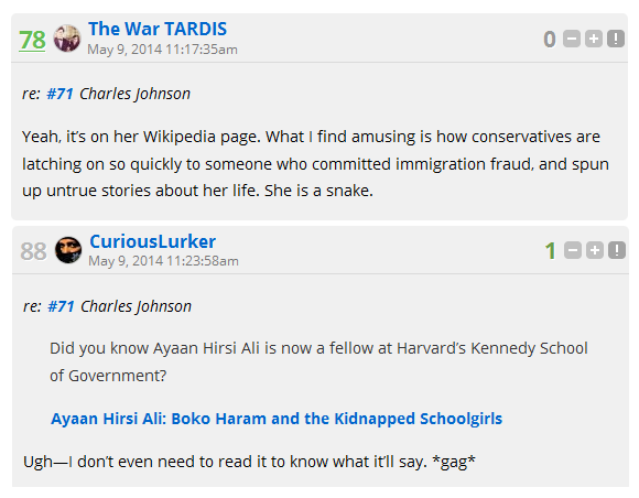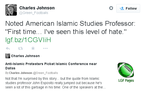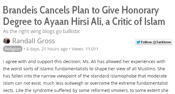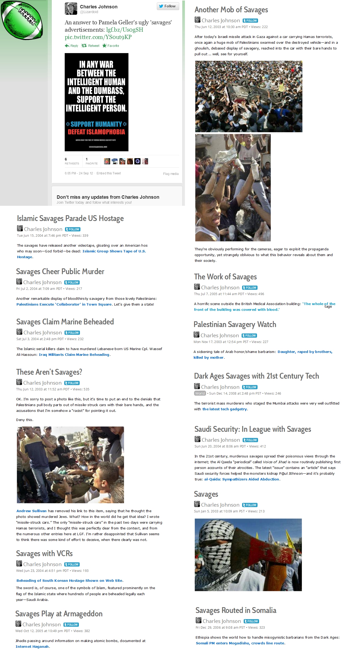 He is furiously down-dinged by the LGF leftists and Islamists.
