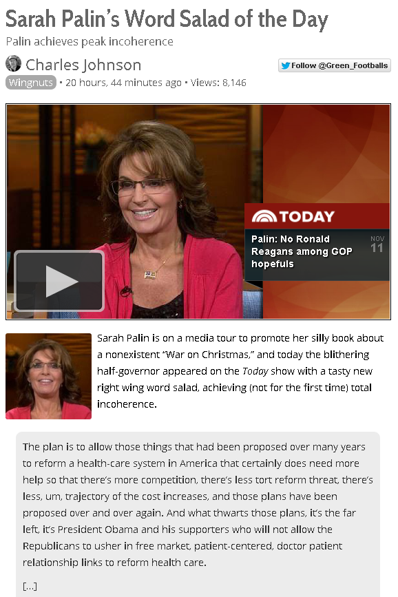 .. and today the blithering half-governor appeared on the Today show with a tasty new right wing word salad, achieving (not for the first time) total incoherence.