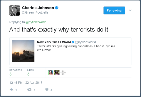 Charles Johnson, Apr 2017, has got new, left-wing theories for why jihad happens.