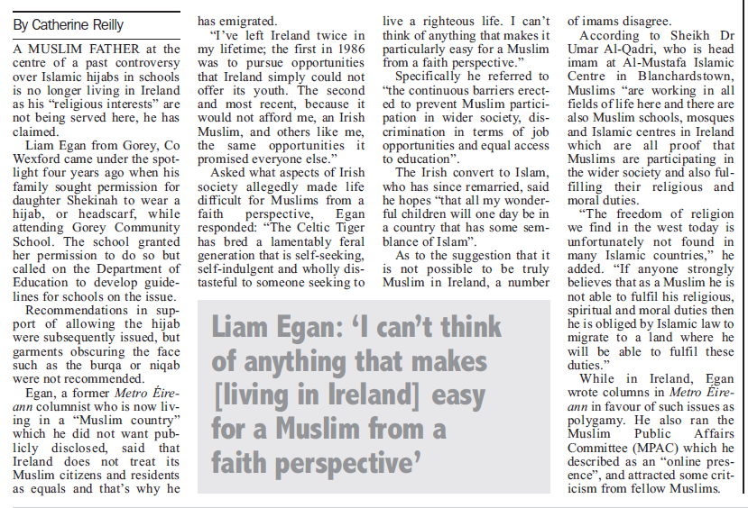 Liam Egan is an Irish convert to the violent, oppressive, totalitarian form of Islam