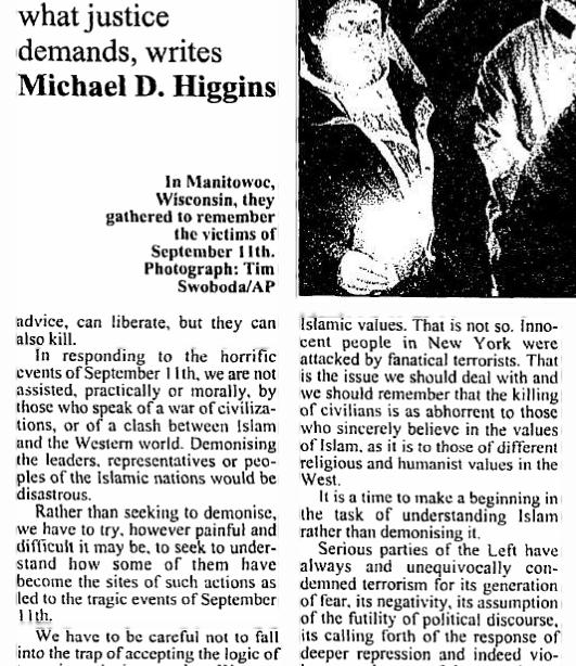 gives a different view to Michael D. Higgins, who knew only freedom.