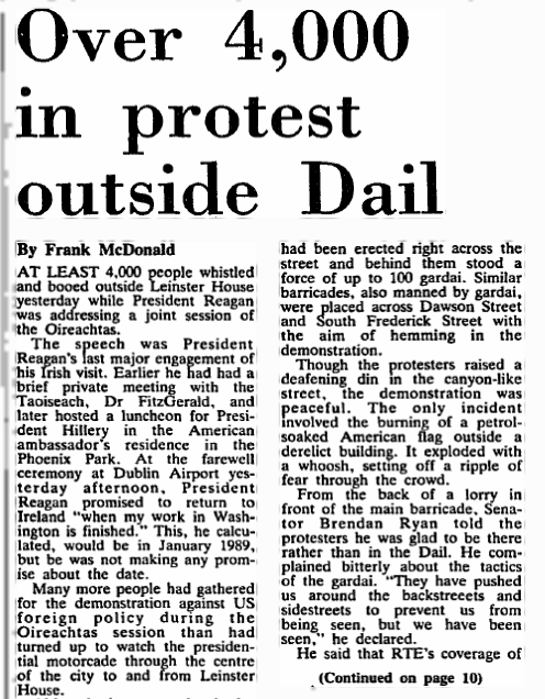 When Reagan visited Ireland in 1984, Michael D. spoke at an anti-US protest where the American flag was burnt.