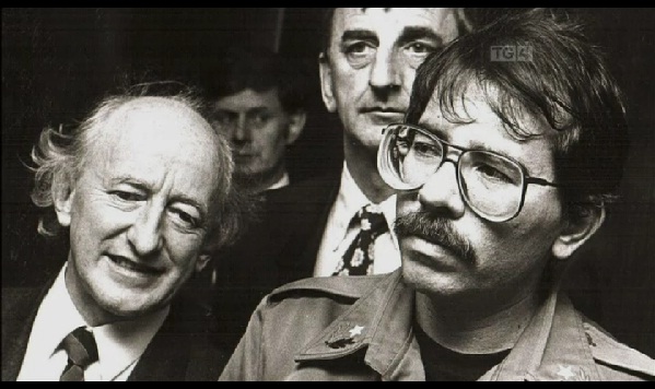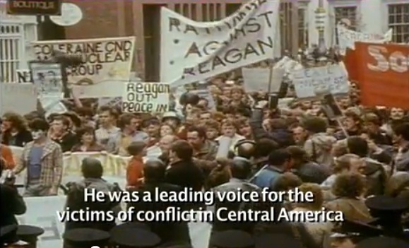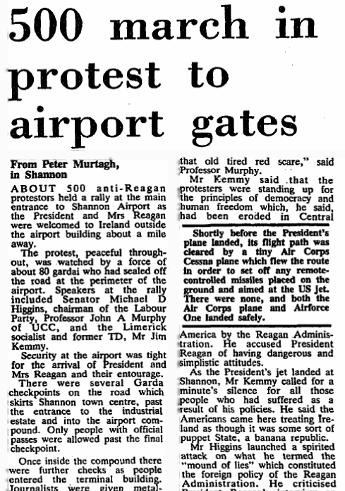 Michael D. protests the visit of U.S. President Ronald Reagan to Ireland in 1984.