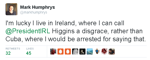 President Michael D. Higgins disgraced Ireland in Nov 2016 by praising