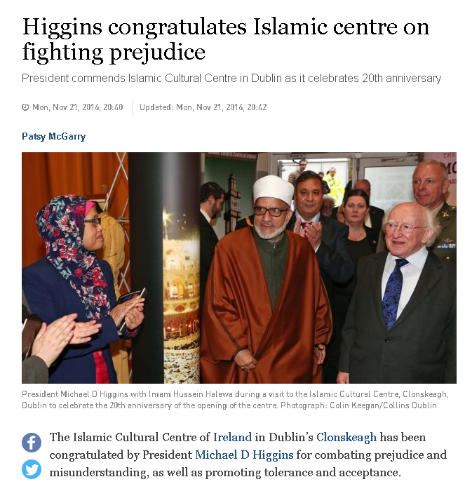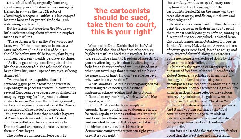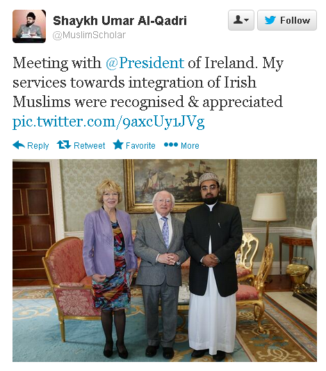 He declares that it should be illegal in Ireland and the West to blaspheme against Islam.