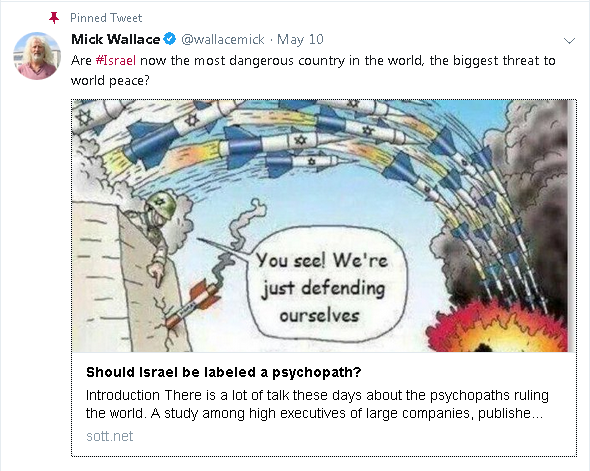 As at May 2018, Mick Wallace's pinned tweet was a link to a
