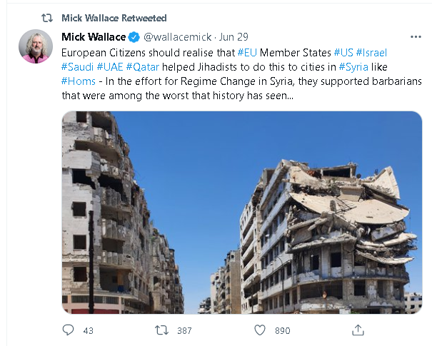 So many layers to this Mick Wallace tweet of 29 June 2021.