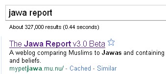 "The Jawa Report .. proudly describes itself as a "weblog comparing Muslims to Jawas"."