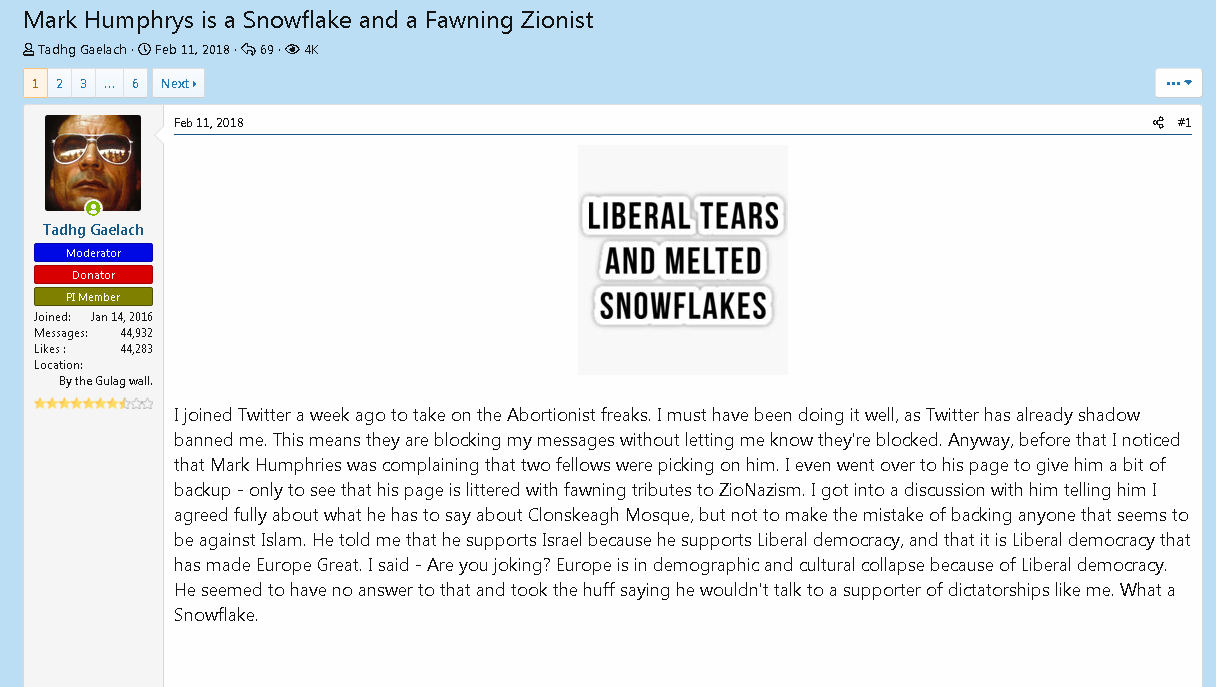 "Mark Humphrys is a Snowflake and a Fawning Zionist", Feb 2018.