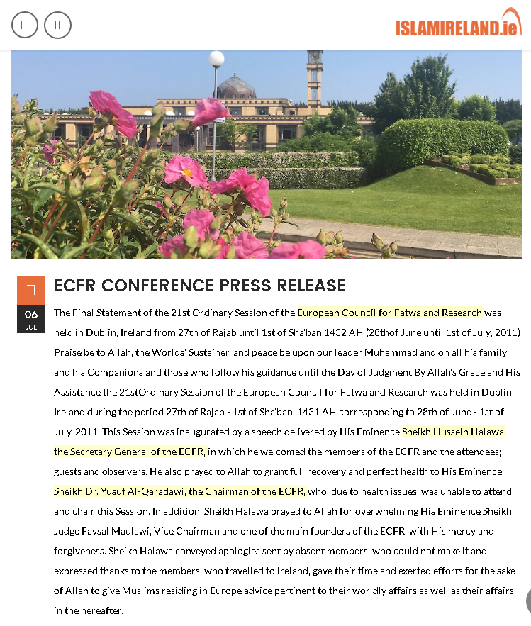 Hussein Halawa and Clonskeagh mosque and Yusuf Al-Qaradawi: