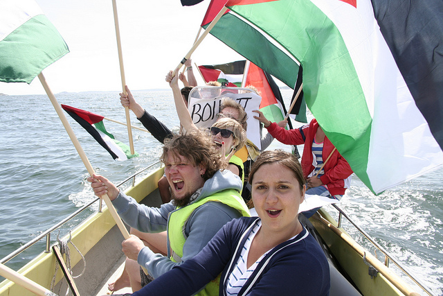where the young people would try to sail "Palestinian" boats past an "Israeli" blockade.