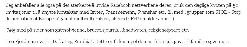 Breivik praises all sorts of peaceful anti-jihad sites, that never call for violence,