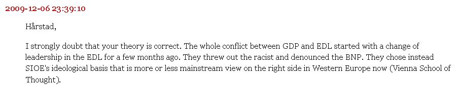 "I find the LGF view of Vlaams Belang and similar European groups the most convincing. I think the blogs that defend Vlaams Belang have made a mistake. It doesn't mean they are racist - just that they've made a bad call on allies.