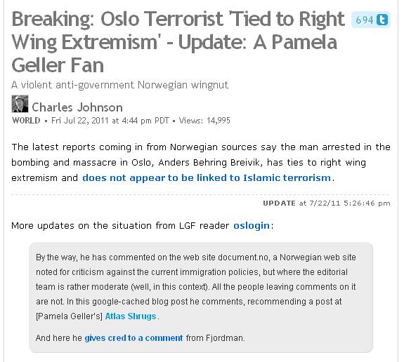 - When it is pointed out to Charles Johnson that Breivik is an LGF fan too,