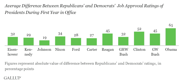 Gallup poll, Jan 2010. Obama is the most polarizing first-year president since Gallup started polling.