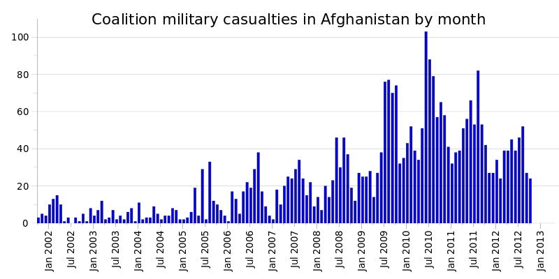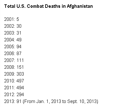 "Consider casualties: Years after the removal of the Taliban, Afghanistan was still relatively quiet, and a year's fatalities there often were exceeded by a single month's deaths in Iraq (e.g. cf. 48 American dead in Afghanistan in 2003, 52 in 2004, 99 in 2005; 98 in 2006; etc. Yet more have been killed already in the first part of 2009 (183) than in all of last year combined (155). So why is Afghanistan heating up precisely as Iraq cooled off? ...