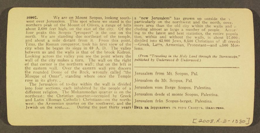 From a stereographic library of images from the Holy Land, Keystone View Company, 1905.